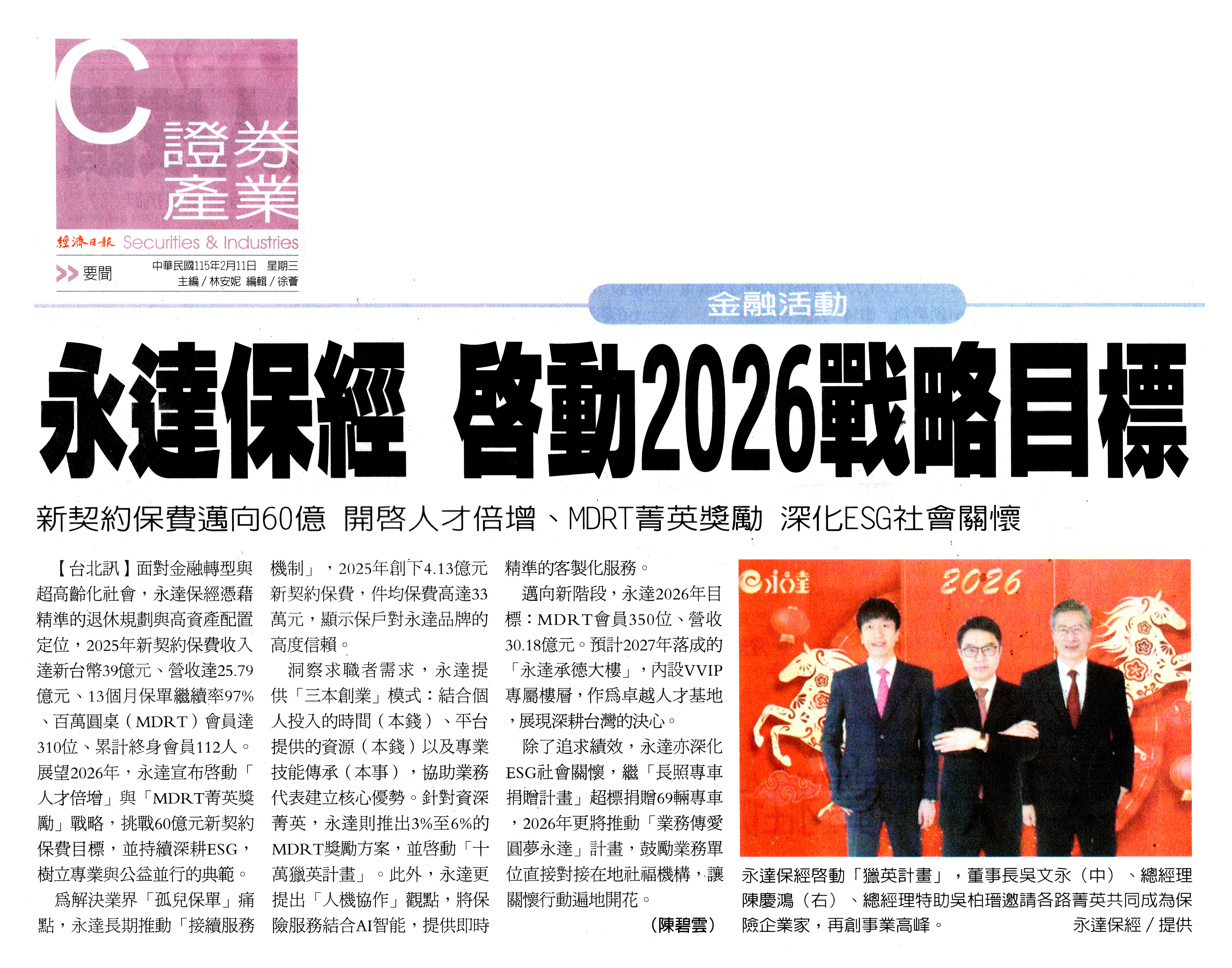 • 【經濟日報】永達保經 啟動2026戰略目標