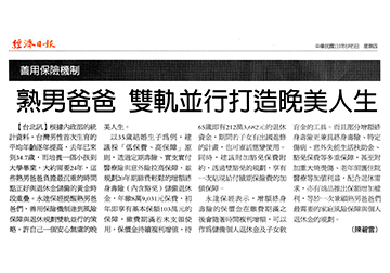 新聞中心 | 2021年善用保險機制 熟男爸爸 雙軌並行打造晚美人生 【經濟日報】 2021.8.05永達保經提醒熟男爸爸們,善用保險機制達到風險保障與退休規劃雙軌並行的策略,許自己一個安心無虞的晚美人生。...(詳報導如下)