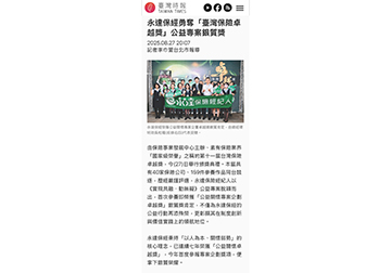 新聞中心 | 2025年永達保經勇奪「臺灣保險卓越獎」公益專案銀質獎 【臺灣時報網路新聞】 2025.08.27由保險事業發展中心主辦、素有保險業界「國家級榮譽」之稱的第十一屆台灣保險卓越獎,今(27)日舉行頒獎典禮。本屆共有40家保險公司、159件參賽作品同台競逐,歷經嚴謹評選,永達保險經紀人以《實現共融.動無礙》公益專案脫穎而出,首次參賽即榮獲「公益關懷專案企劃卓越獎」銀質獎肯定,不僅為永達保經的公益行動再添殊榮,更彰顯其在制度創新與價值實踐上的領航地位。…(詳報導如下)